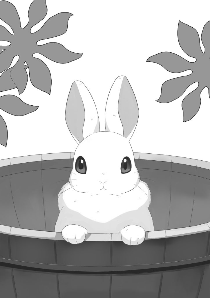 - 樽に入ったうさぎを描写したイラスト