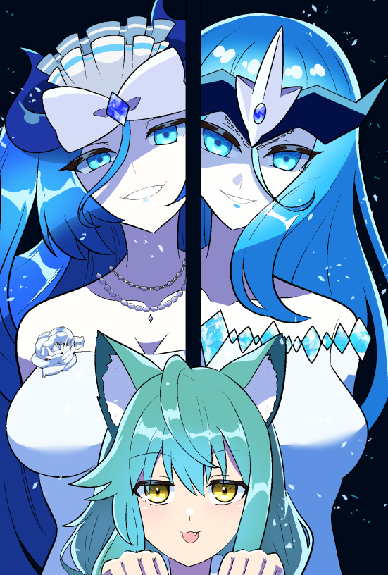• 上二名の女性は容姿も似ており姉の双子、下の子はケモ耳の妹。