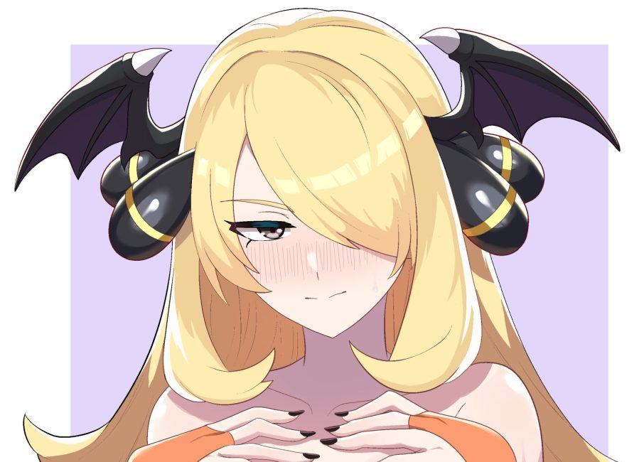 • 『ポケットモンスター』の登場キャラ「シロナ」が                                   『ヴァンパイア』シリーズに登場するモリガン・アーンスランドのコスチュームを着ているイラスト