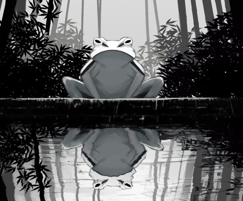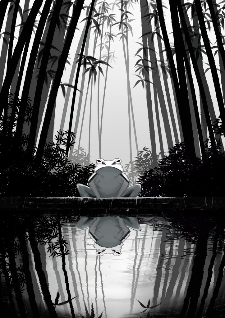 背景イラスト「竹林のカエル」 事例カテゴリ背景イラスト事例タグデジタル制作モノクロイラスト背景イラスト 〉依頼の要件 竹林とカエルが水面に反射している姿を描写したイラスト 〉制作内容 背景のラフイラストを提出 ラフのデザインを線画を描き起こし 決定した構図を元に、色の描き込み 完成したイラストデータを提出 〉付加情報 水面の反射に波紋や微小な色彩の変化をつけることを意識して描きました。