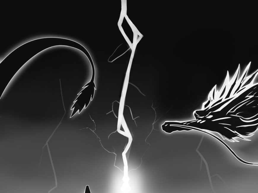- 雷により、龍や建物の明暗がくっきり分かれるを意識して描きました。
