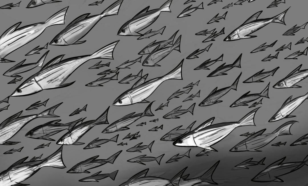- 魚より魚群全体に目が行くように最低限の描きこみを意識しました。