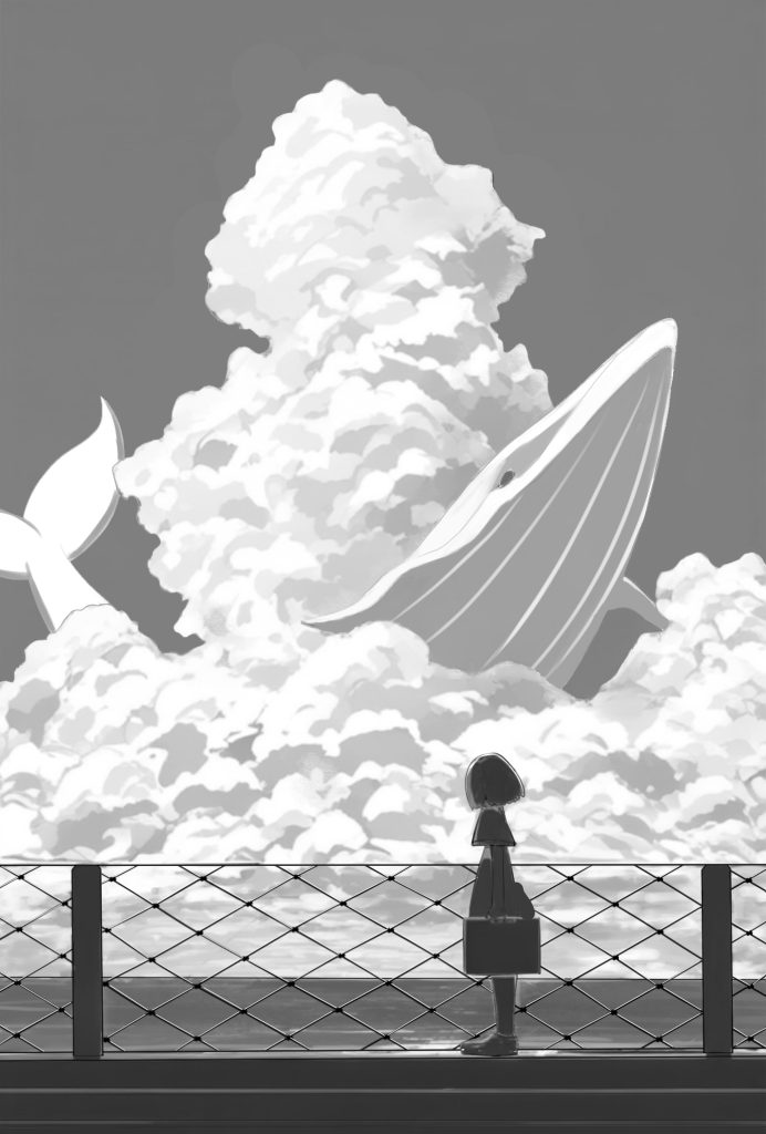 • クジラの巨大さを意識するために遠くから少女が見ている描写にしました。